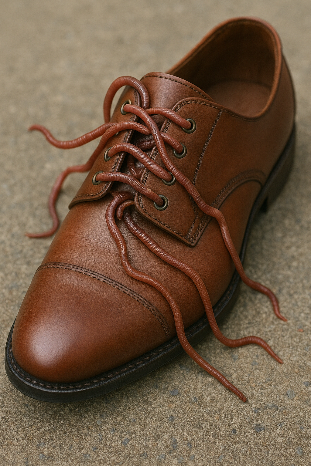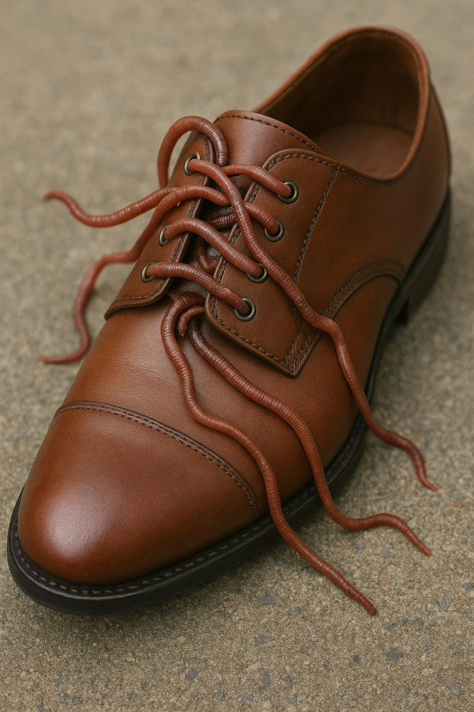 - Wipe your shoes and Q-tip the eyelets, using the worm mucus and food slurry to shine the leather and polish the metal.